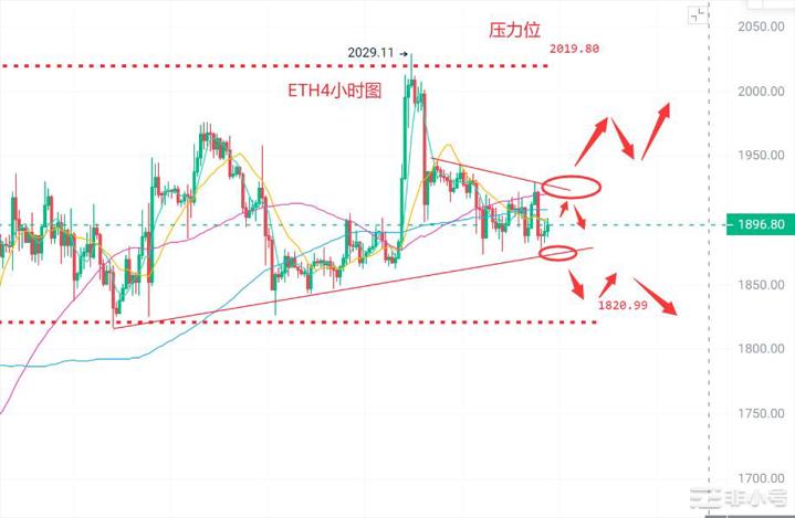 以太坊昨日高点1930附近,低点1878附近,以太继续联动大饼为主,整体走势要略强于大饼,仍处于上升趋势中,短线进入收敛口中。