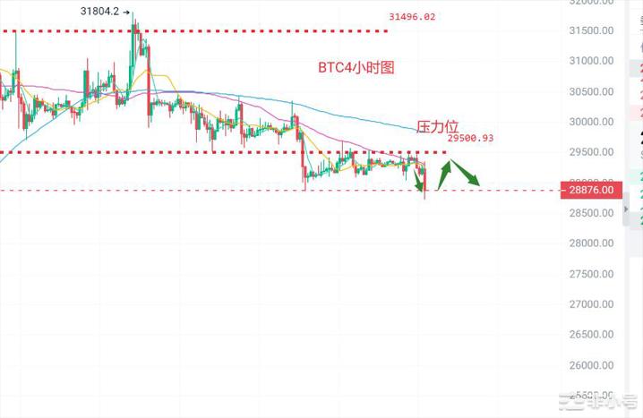 日线级别昨日收出小阴线,布林带朝下运行,受布林下轨28600支撑,MACD缩量下行,4小时级别布林带开口被打开,k线击穿布林下轨,MACD放量下行。操作上建议回踩28500附近轻仓做多,目标28900-29300,上攻29500不破轻仓做空,目标29200-28600,止损各350点。行情变化万千,具体操作以实时策略为主。 一颗红心做好两手准备嘉威KDJ四柒伍八零,浮竹提醒切记带好止损止盈