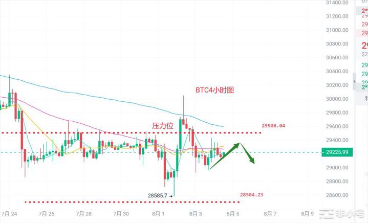 大饼昨日高点29430附近,低点28960附近。大饼昨日走窄幅横盘震荡走势,目前在29200一带反复,此位也是筹码密集区,需要时间去消耗,日内预计继续走横盘震荡,大饼近期的波动率可以说是近五年来的新低了,这种情况下往往意味着有大波动发生,在大波动发生前,大概率会先走一波洗盘行情。今晚将公布非农数据,可能会引起波动,注意防范风险。