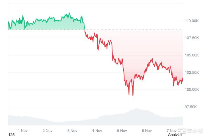 11月6日,比特币从低位约 $99,000 回升至约 $100,832–$103,000 区间,最高达$104,526