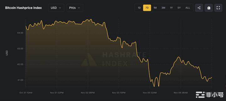 - 11 月 01 日:本周高点 44.79 美元/PH/s/天