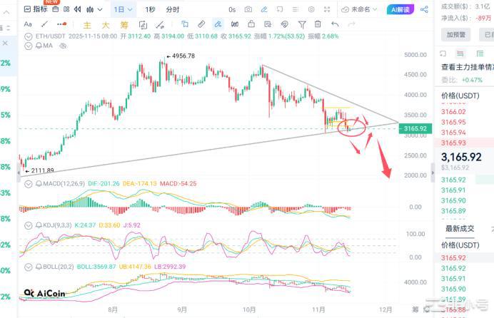 币圈浮竹:11.15比特以太向跌破重要关口,空头能否还能延续