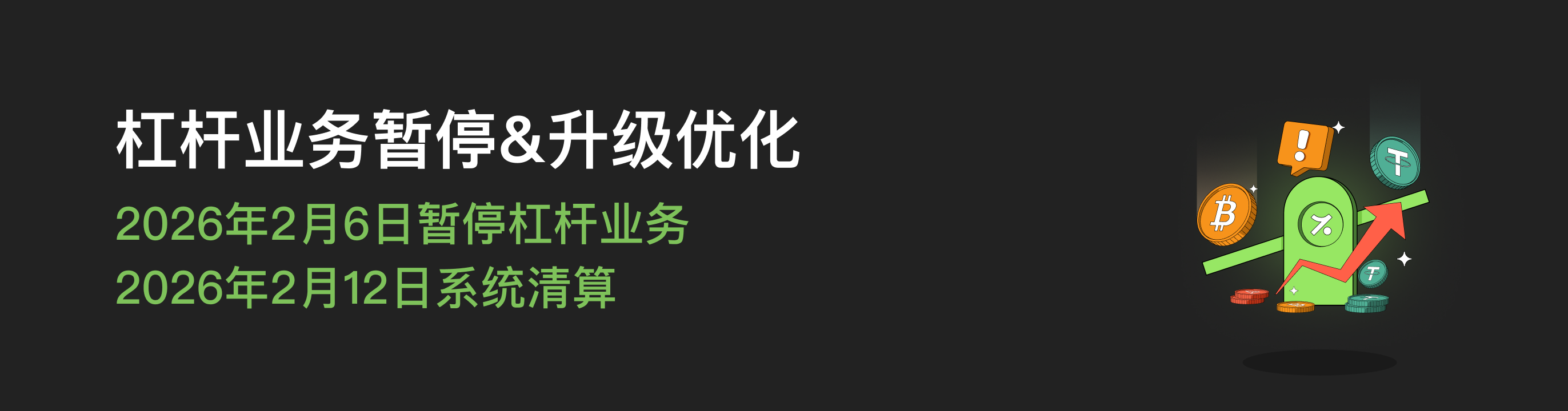 请持有杠杆仓位的用户,务必在2026年2月12日15:00(UTC 8)前主动清还全部杠杆借款并平仓相关仓位;